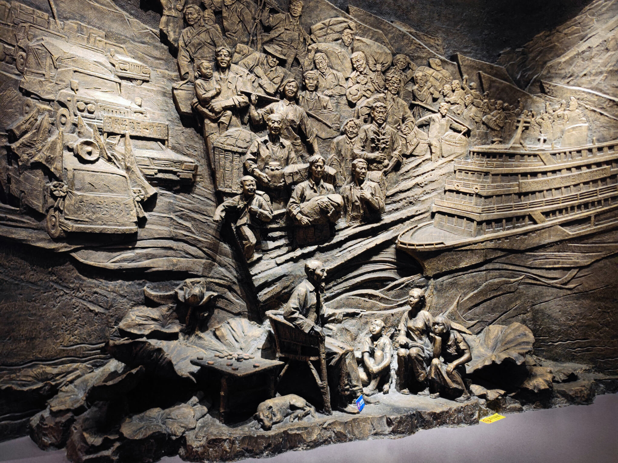 1,3 Millionen Menschen mussten umgesiedelt werden. Natürlich waren alle ganz freudig darüber, wie auf diesem Denkmal.